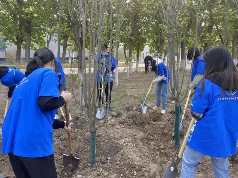 仪式结束后,老师和同学们领取了劳动工具,共同参与了植树的过程。