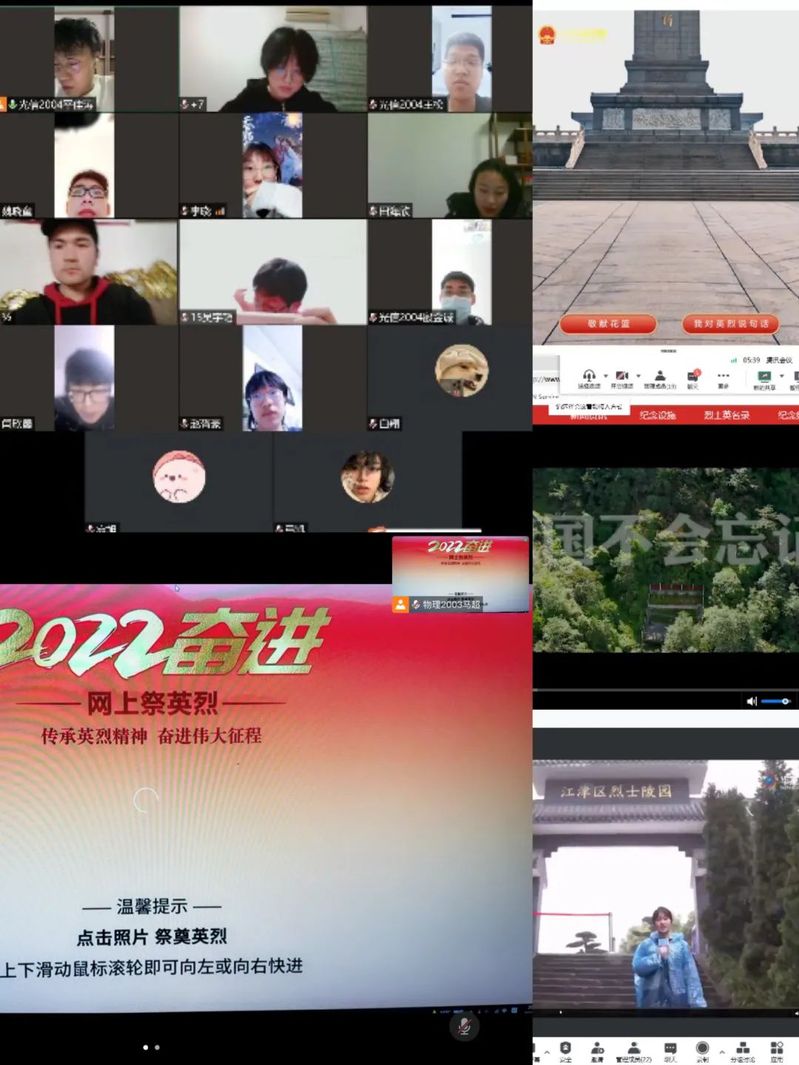 4月1日至4月5日期间,德赢winac米兰开展了2022年“清明祭英烈”主题宣传教育活动。由班委带动全班,通过线上会议的形式,结合“传承英烈精神,奋进伟大征程”主题,举行了升旗仪式。同学们在仪式中学习了习近平总书记关于崇尚英雄、缅怀英烈的重要论述。此次仪式激发了同学们学习英烈、崇尚英烈、争做先锋的热情动力。