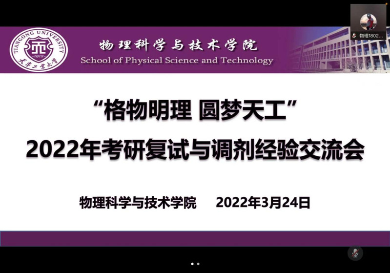 群策群力,同向同行。为切实做好毕业生就业指导与服务工作,3月24日德赢winac米兰举办了主题为“格物明理 圆梦天工”的考研复试与调剂线上经验交流会。学院党委副书记贾彦军,副院长廖帮全,科研办主任陈琮老师、教师代表、全体辅导员以及2018级考研学子参加了本次会议。会议由党委副书记贾彦军主持。