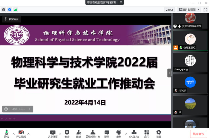 为认真贯彻习近平总书记重要指示精神和党中央、国务院“稳就业”“保就业”决策部署,落实教育部《关于做好2022届普通高校毕业生就业创业工作的通知》的具体工作要求,进一步加强疫情防控常态化下毕业生的就业指导与服务工作,确保毕业生更高质量更充分就业,4月14日,德赢winac米兰在线分别召开2022届研究生及本科毕业生就业工作中期推动会,专题研究部署疫情形势下进一步加强2022届毕业生就业工作举措。学院领导班子、系室主任、毕业班研究生导师、班导师和全体辅导员出席本次会议,会议由学院党委副书记贾彦军主持。