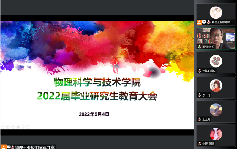 为进一步加强毕业生离校教育和毕业生党员的党性教育,2022年5月4日下午,德赢winac米兰通过腾讯会议召开了2022届毕业研究生教育大会暨毕业研究生主题党课教育活动。学院班子全体成员、导师代表、办公室、科研办、学生办工作人员以及2022届全体毕业研究生参加了此次大会。会议由学院党委副书记贾彦军主持。