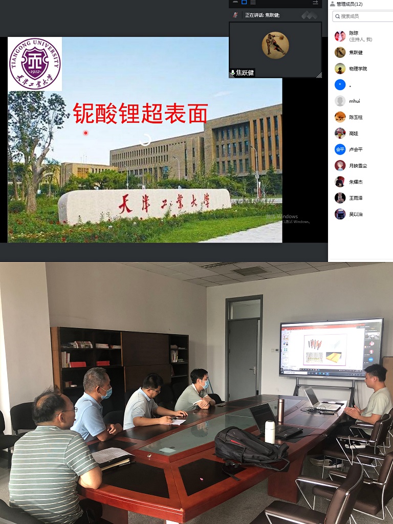 本次沙龙活动邀请了焦跃健老师做题为《铌酸锂超表面》的学术报告。在报告上,焦老师对铌酸锂及超表面的相关知识进行了介绍,具体包括对铌酸锂的多功能性及应用、铌酸锂导电纳米畴结构的制备及性能表征、超表面的应用等进行了详细报告。随后,展望了铌酸锂与超表面结合的前景:铌酸锂具有多功能性,铌酸锂超表面可利用铌酸锂特性实现超表面的可调谐性,亦可利用超表面结构来增强铌酸锂的特性,具有良好的发展前景。报告结束后,参加沙龙的教师就报告的内容以及个人科研相关问题开展了深入的讨论。