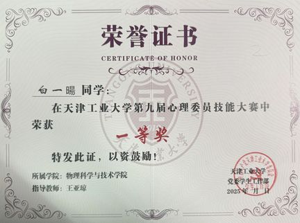 经过三个环节的激烈角逐,白一暘同学凭借在各个环节的出色表现,最终以优异的成绩荣获本次大赛的校级第一名。这一荣誉不仅是对白一暘同学个人能力的高度肯定,也是德赢winac米兰心理健康教育工作的一次重要成果展示。